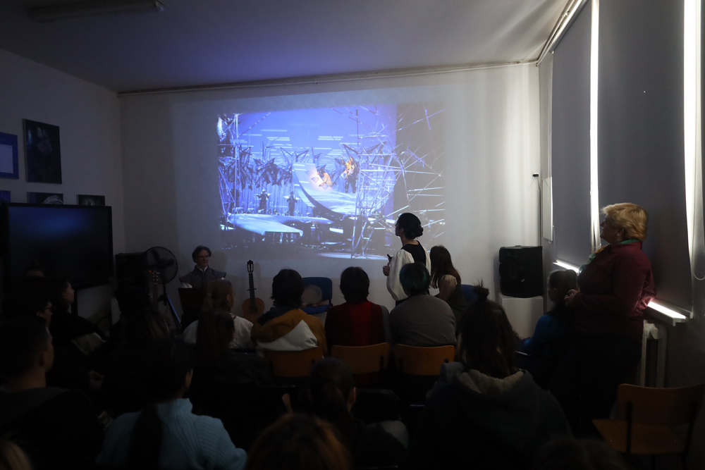 Съвместно с музикантите Асен Маринов - китара, Анита Нейчева - бендир, тамборино, Деница Серафим - вокал и перкусии, представи пред младите художници сценичните формати ОПЕРА, МЮЗИКЪЛ, ОПЕРЕТА, БАЛЕТ, ЦИРКОВО ИЗКУСТВО, КОНЦЕРТ, КИНО с цел да илюстрира визуалното въздействие на музиката от Средновековието до днес. В поредица от слайдове припомни картини от именити художници, описващи как музиката е съпътствала ежедневието на хората, оформяла е техните културни, естетически и духовни представи. Това даде възможност да се анализира ролята на художника в музикалните и филмовите жанрове, приносът му за ефекта на изразните средства, оформящи средата и визията на героите. По време на презентацията звучаха музикални изпълнения наживо: